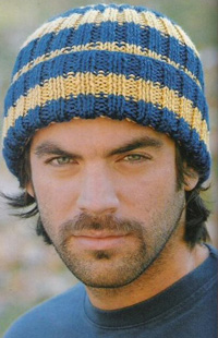 Colocar 102 puntos en las agujas Nro. 4 1/2 y tejer en punto elástico doble comenzando con 2 puntos al revés. Tejemos en punto elástico por 5 hileras y en la siguiente hilera del derecho cambiamos de color.